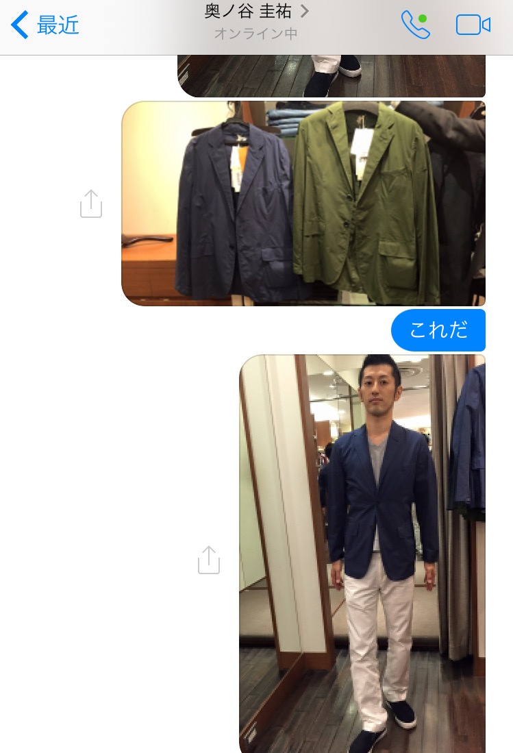 今回も、遠隔でのアドバイスにも関わらず、「Keisuke Okunoyaの丸首Tシャツを合わせて…」とか、「そのお店にこういうシャツがあるはずなんだけど…」という神対応。