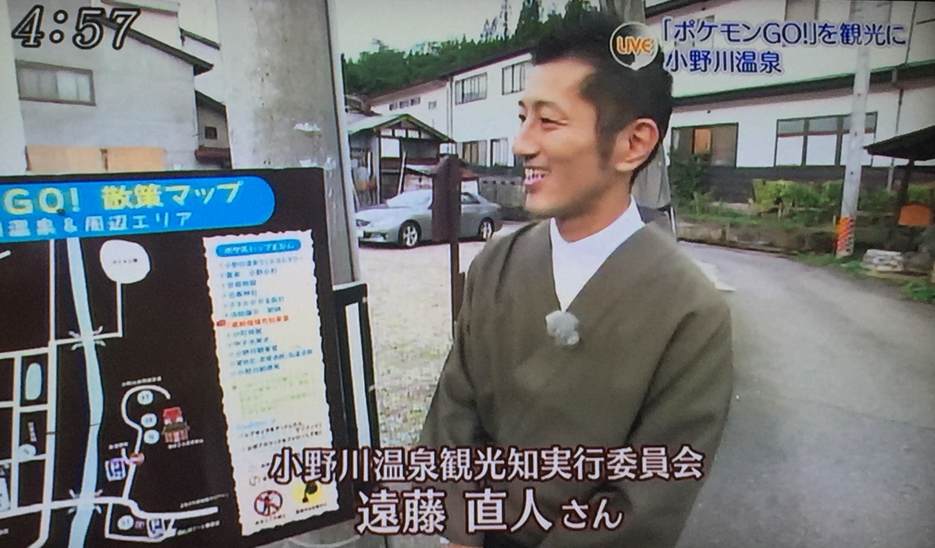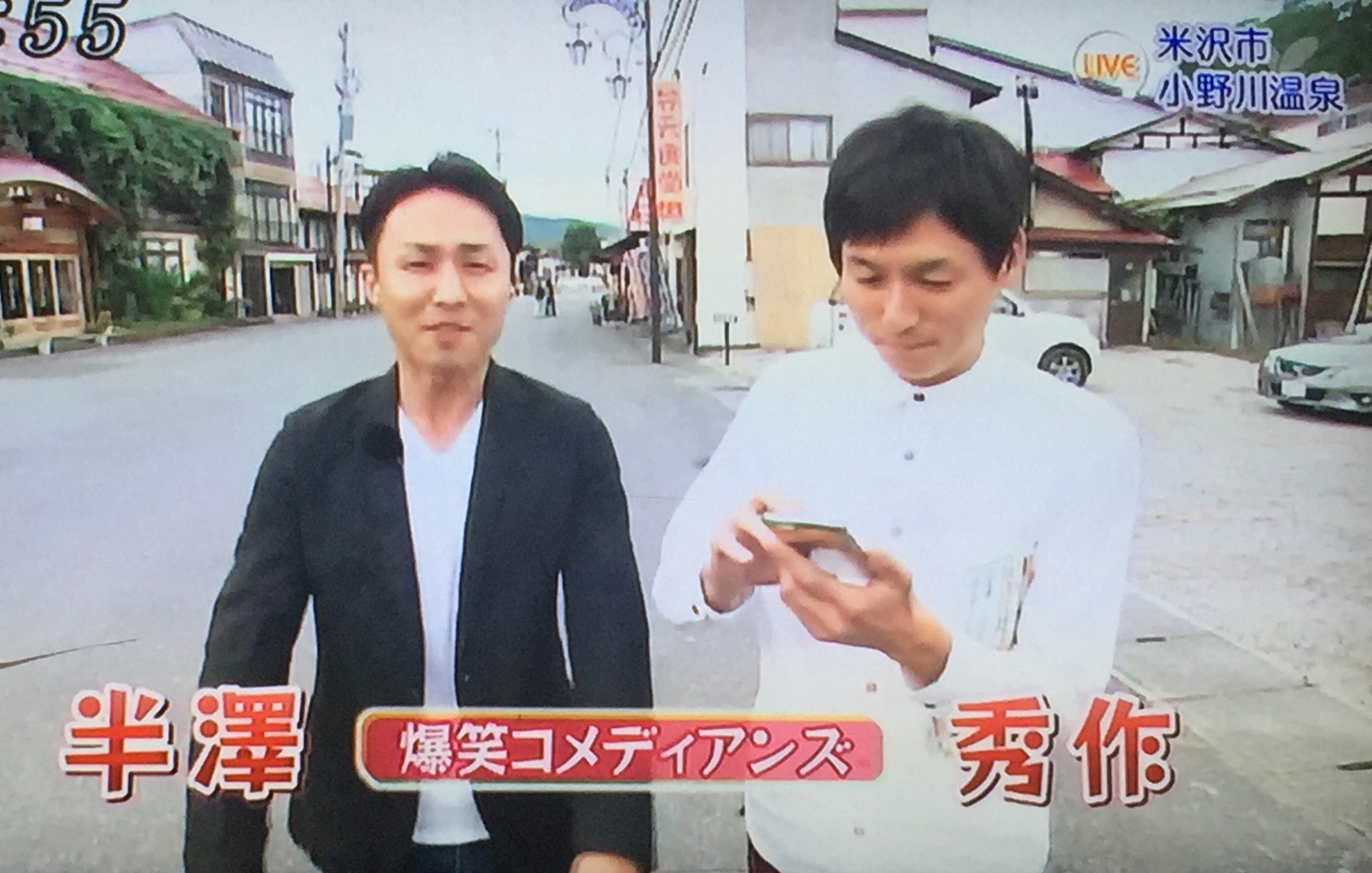 生放送の中継隊が、小野川温泉に来てくださいました。