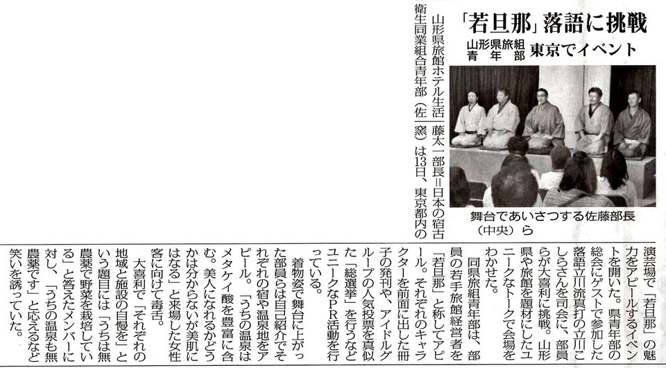 「やまがた若旦那 観光大喜利」が業界紙にW掲載