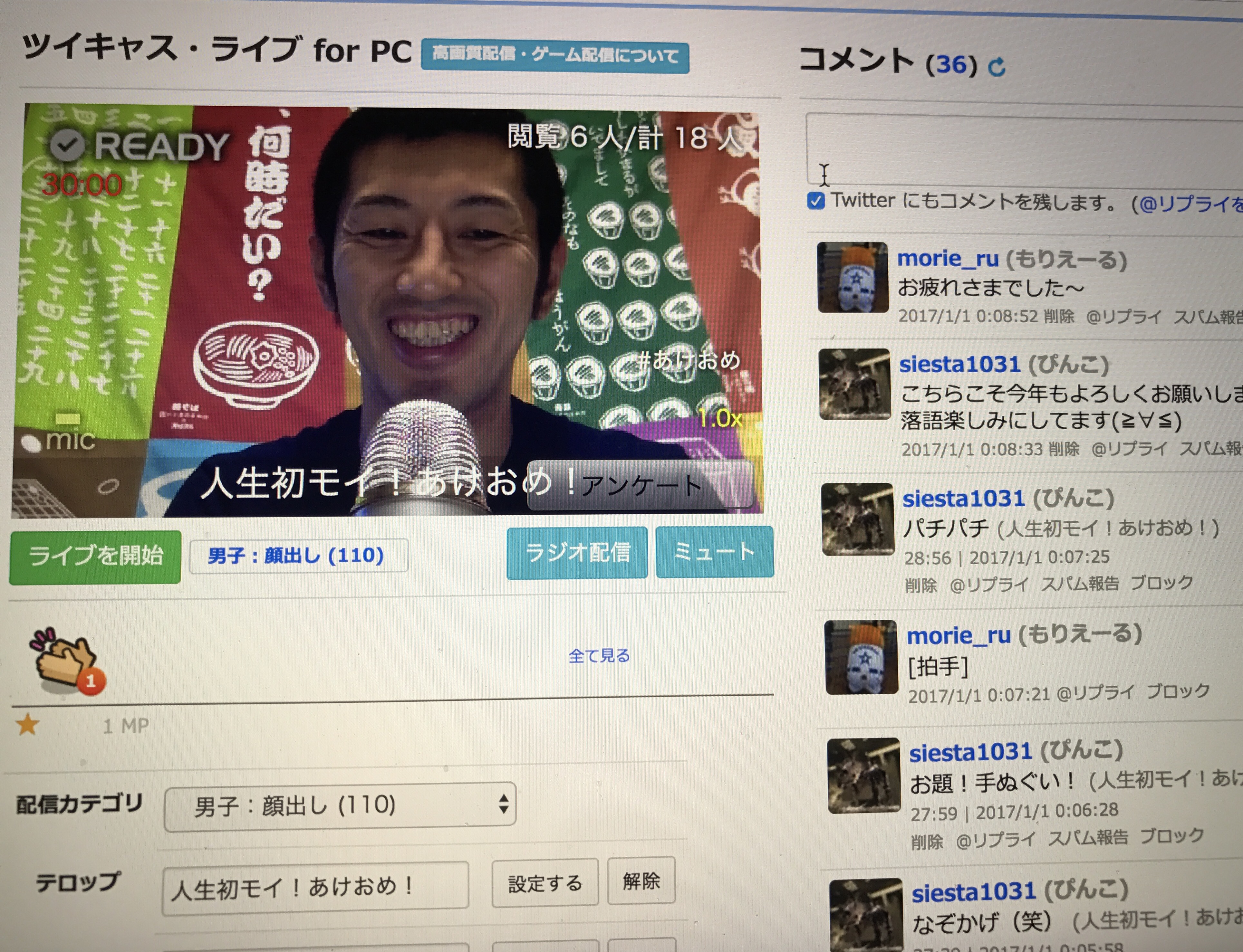 あけおめ!カウントダウンライブやってみました。