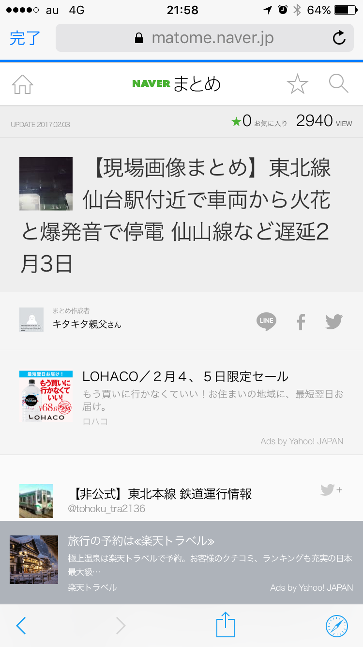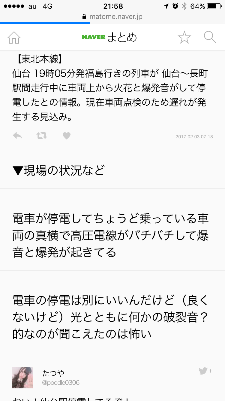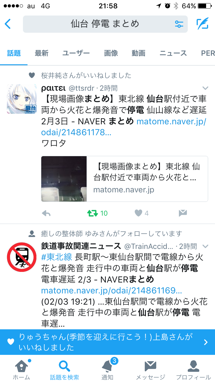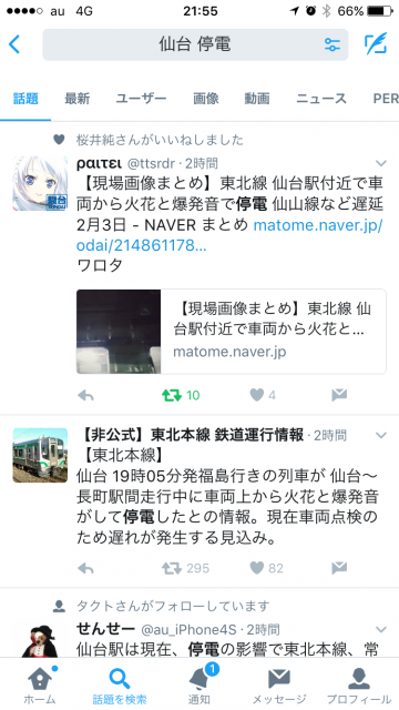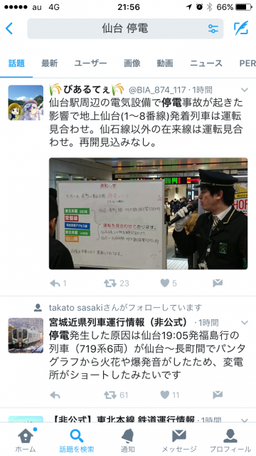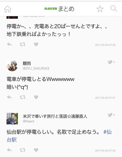 「仙台 停電」で検索すると…