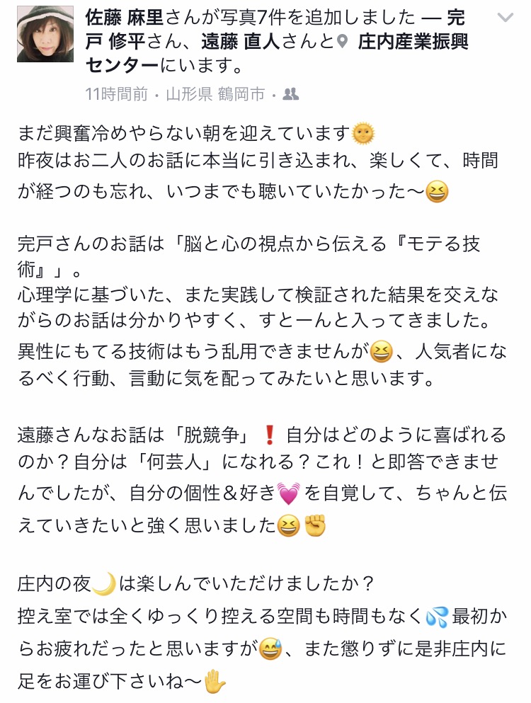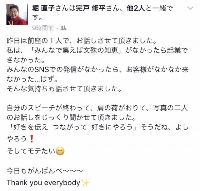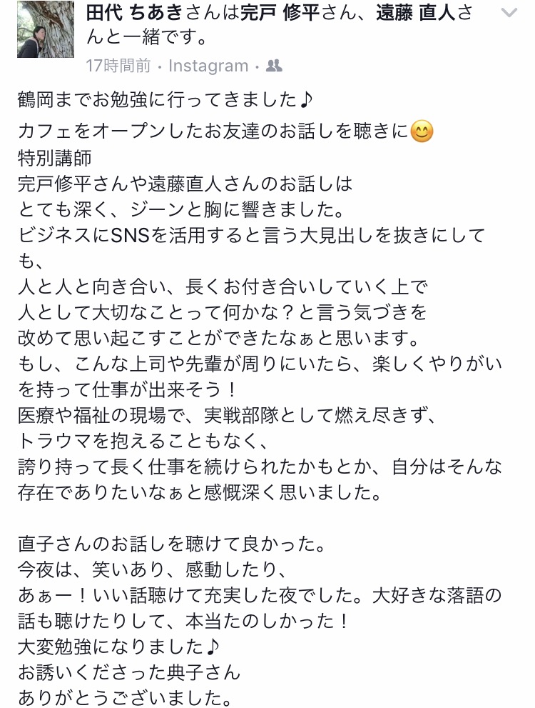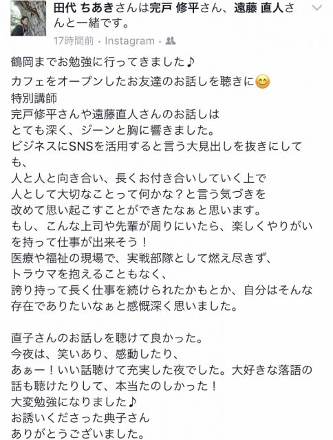 感想もフェイスブックでたくさんいただきました。