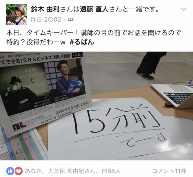 今回の参加者は、9割の方がフェイスブックユーザー。