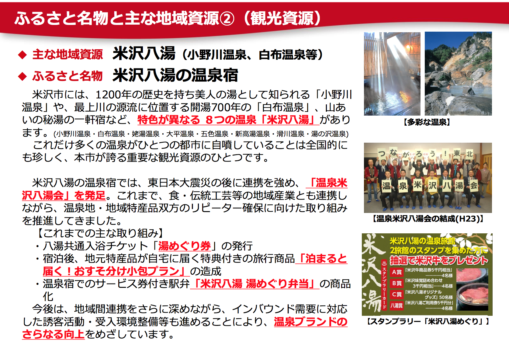 市の支援のもと、米沢八湯を立ち上げ、絆の米沢八湯プランを作りました。