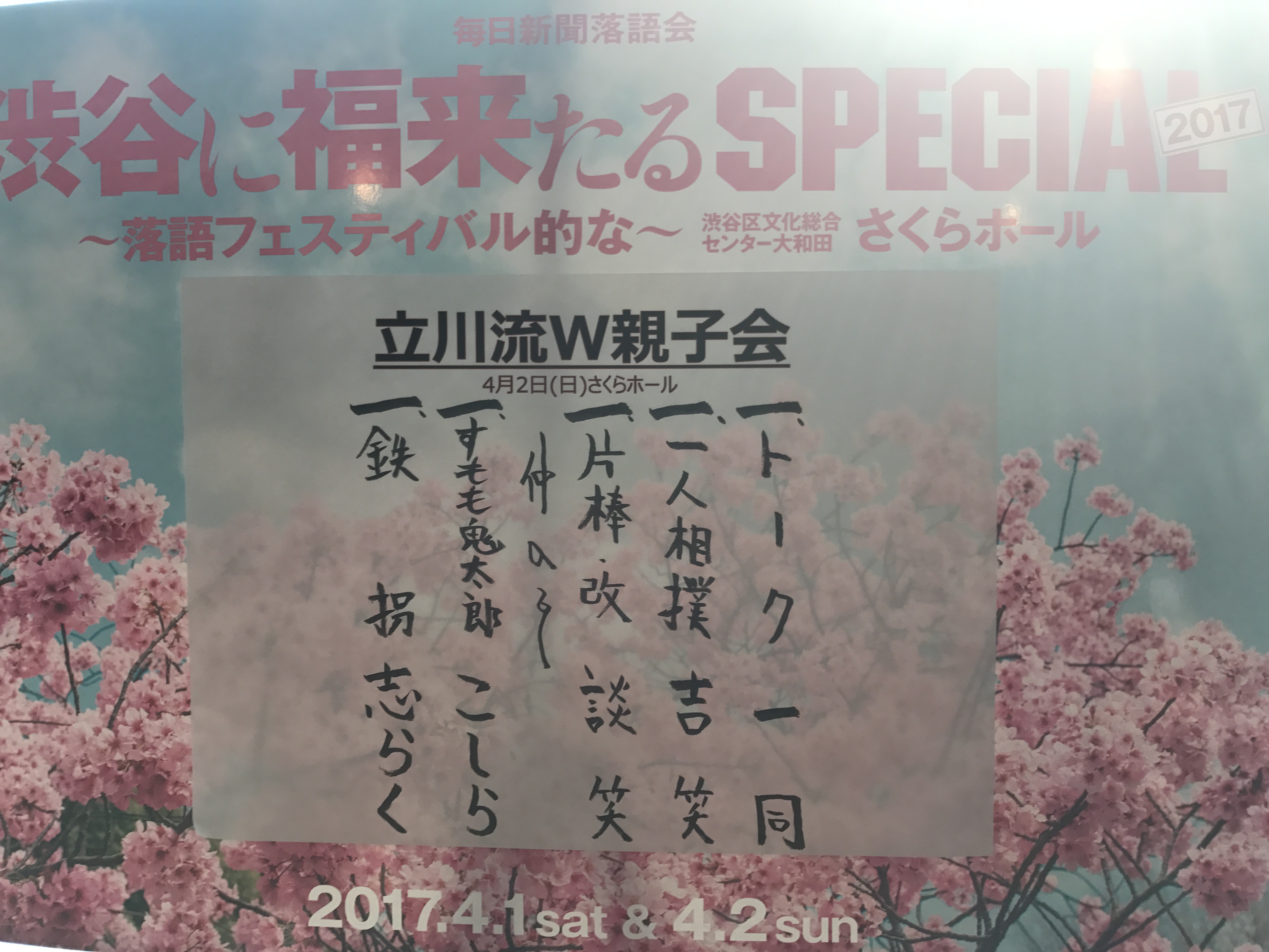 【渋谷に福来たるSP2017】立川流W親子会終了。自由自在な一門の色がよくでた楽しい会となりました。ご来場ありがとうございました。 #立川志らく #立川談笑 #立川こしら #立川吉笑 pic.twitter.com/XuWPVwYjfZ