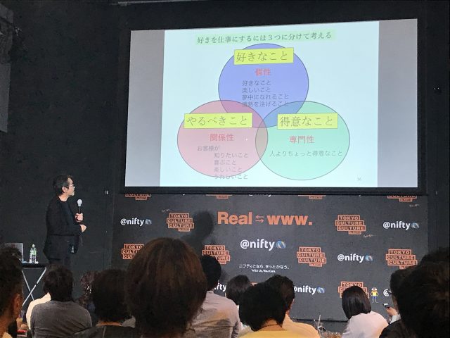 ちょっと前のエクスマでは、「好きと仕事を組み合わせる」でした。