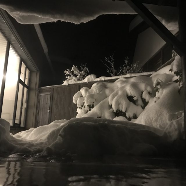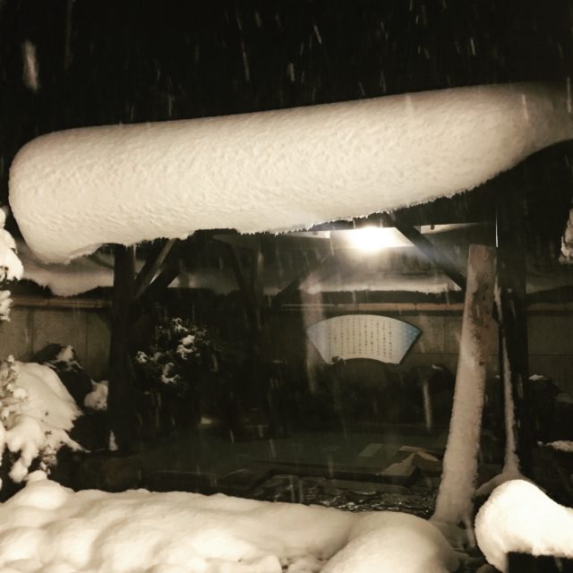 雪見風呂と言いますが、もう露天風呂は雪中風呂。