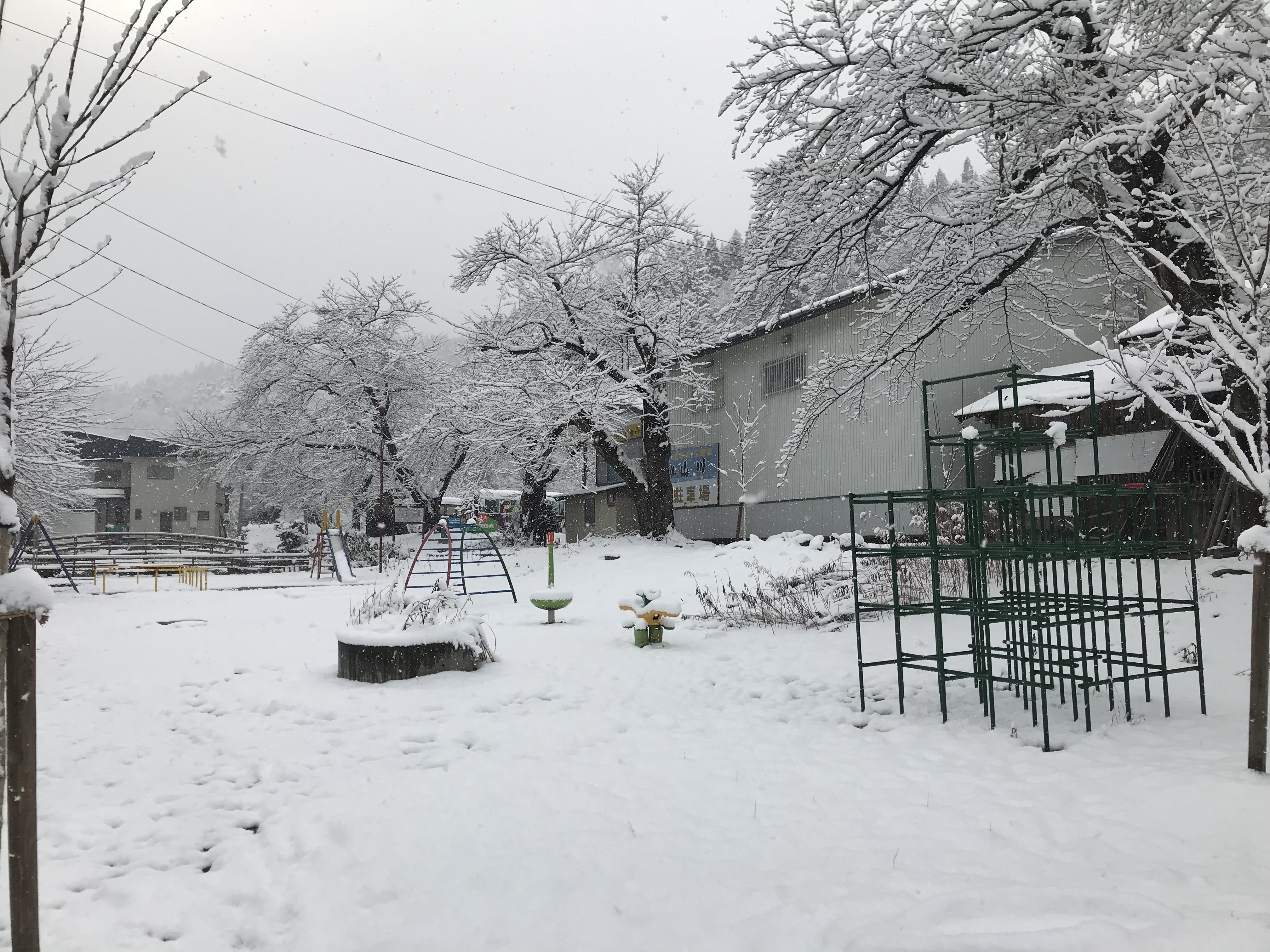 ジャングルジムで実感する積雪量