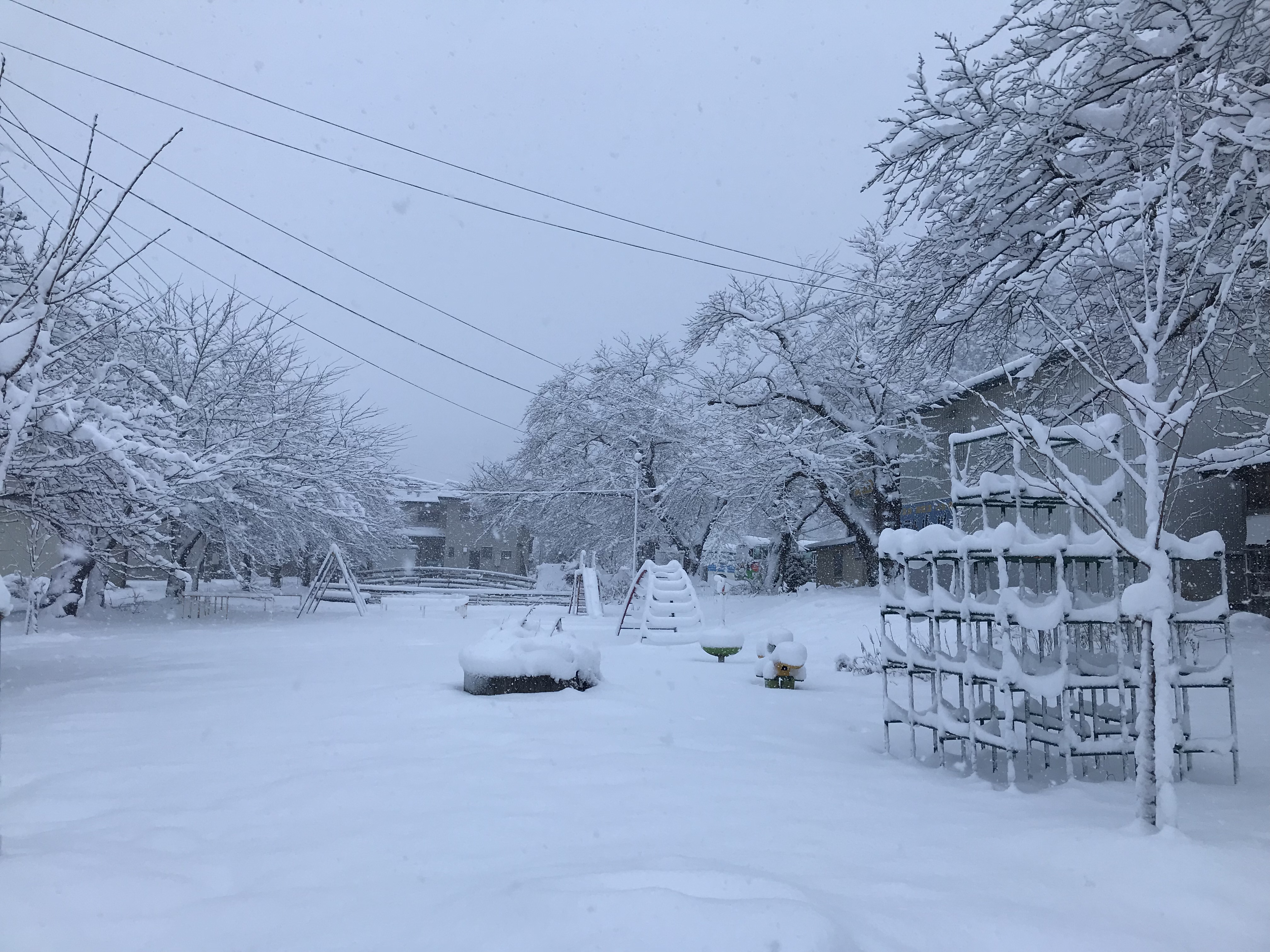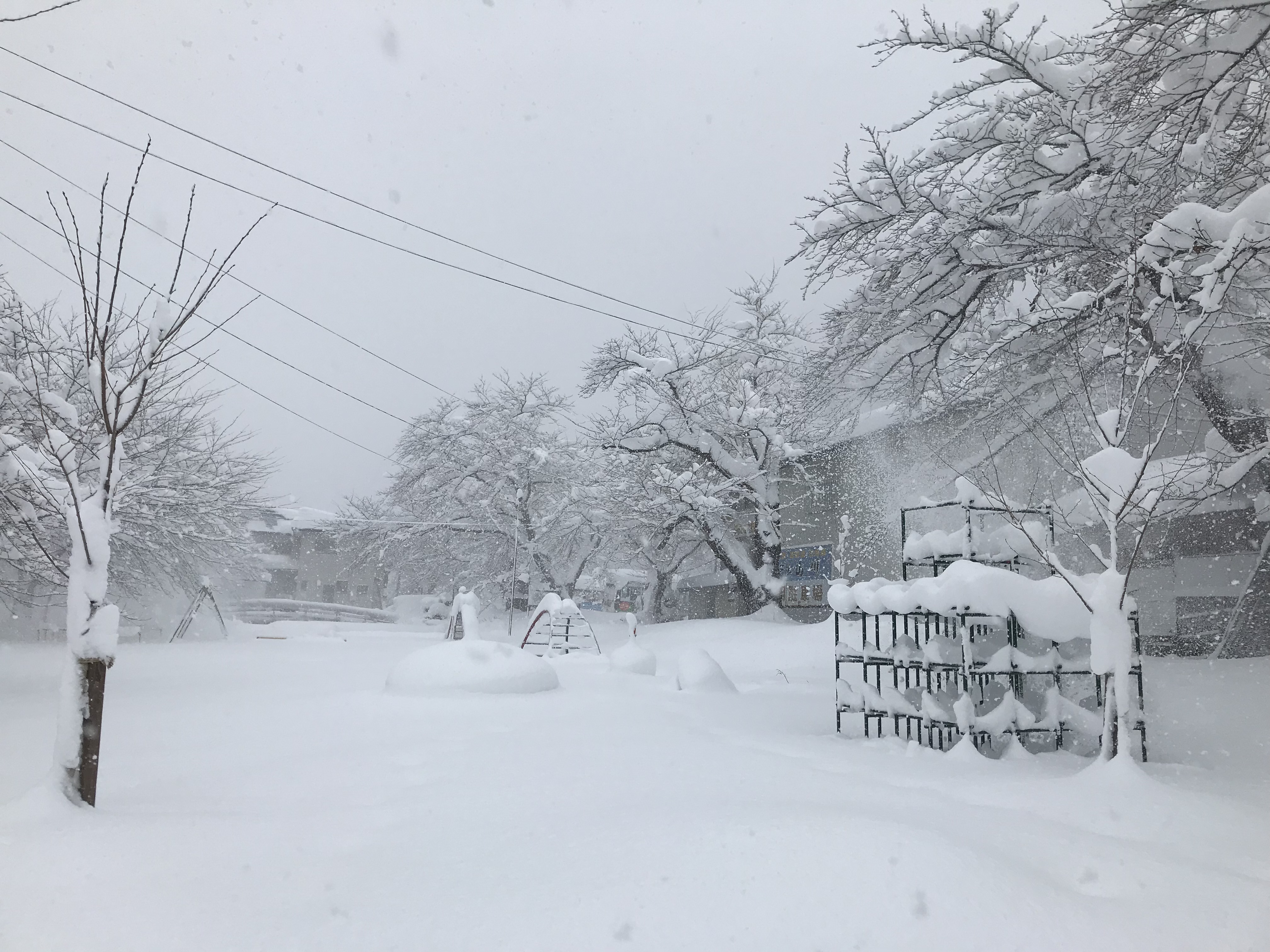 ジャングルジムで実感する積雪量