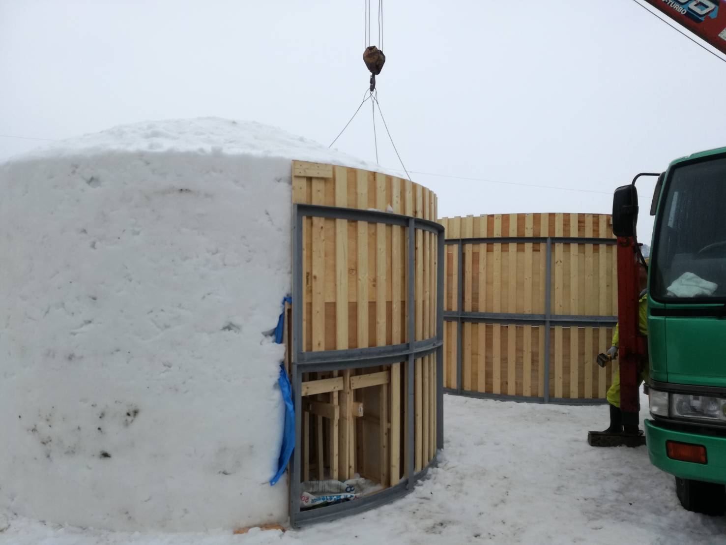 柱などの構造物は一切使っていないので、暖かくなれば溶けますし、雨にも弱いです。