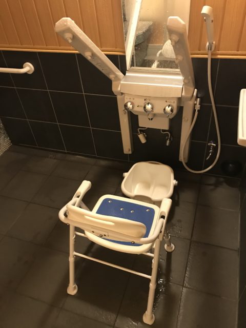 当館の貸切風呂の場合は、「車椅子でもラクラク」がテーマ。