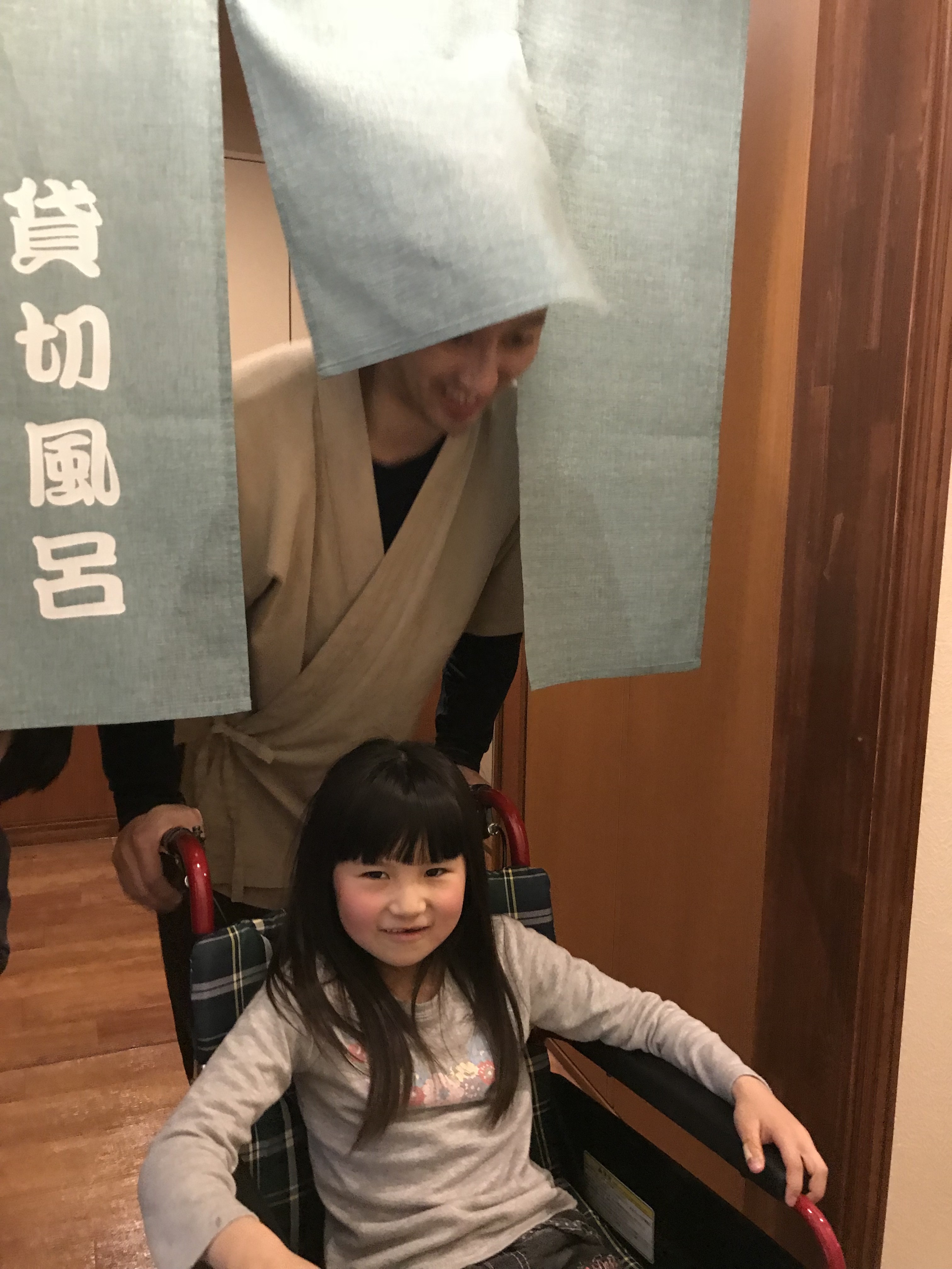 ちょうど車椅子で押していくと引っかからない上、のれんをくぐって雰囲気も味わえます。