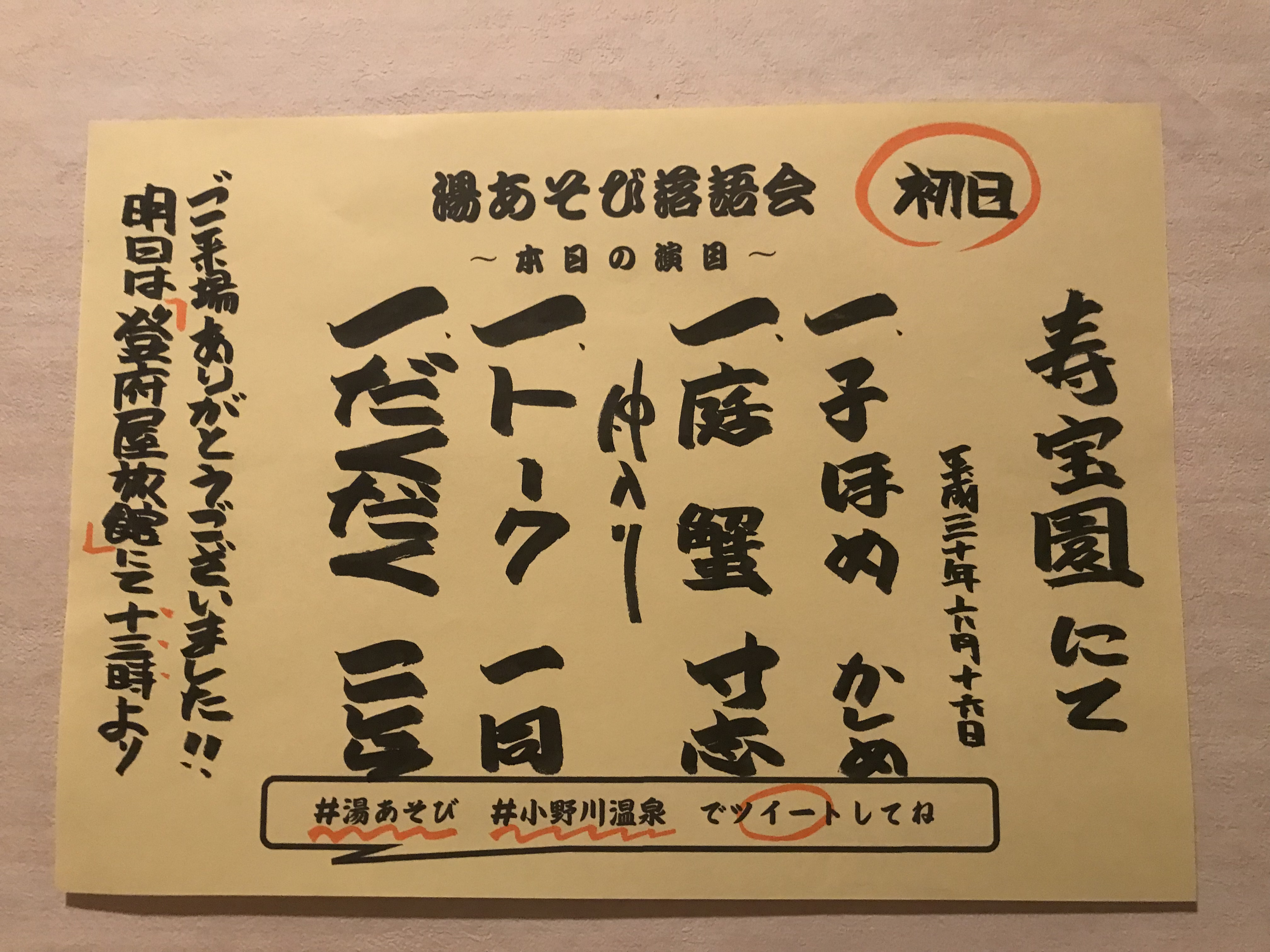 湯あそび落語会。初回は寿宝園さん、満員御礼!