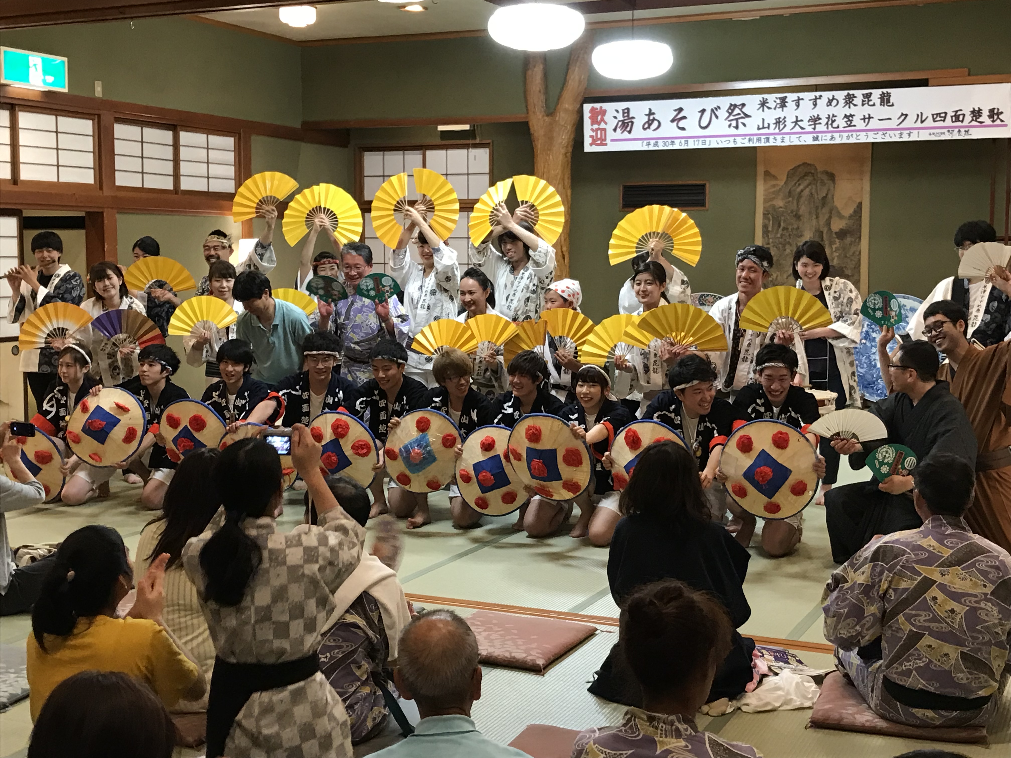 河鹿荘さんでは、花笠踊りとすずめ踊りのショー。