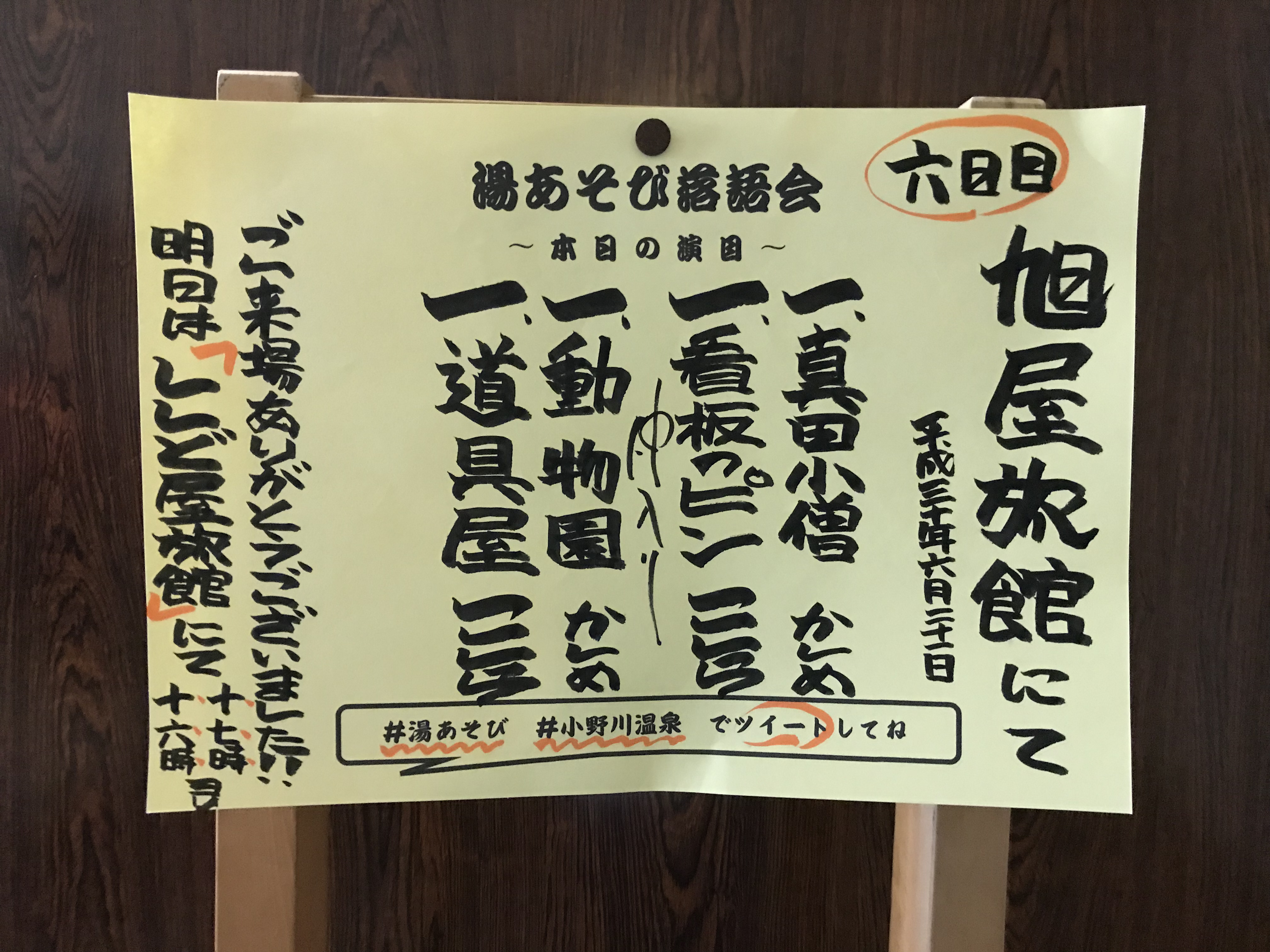 湯あそび落語会6日目。こしら一門での「旭屋旅館」