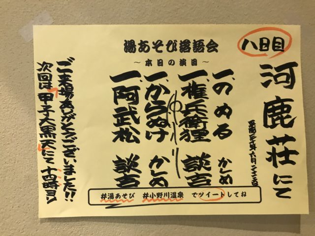 湯あそび落語会8日目。「河鹿荘」での千穐楽