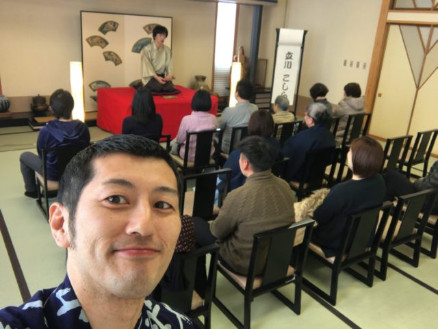 当時は、立川仮面女子と名乗っていた かしめさんが、番頭仕事をしながら宴会で落語を披露するという修行をなさいました。