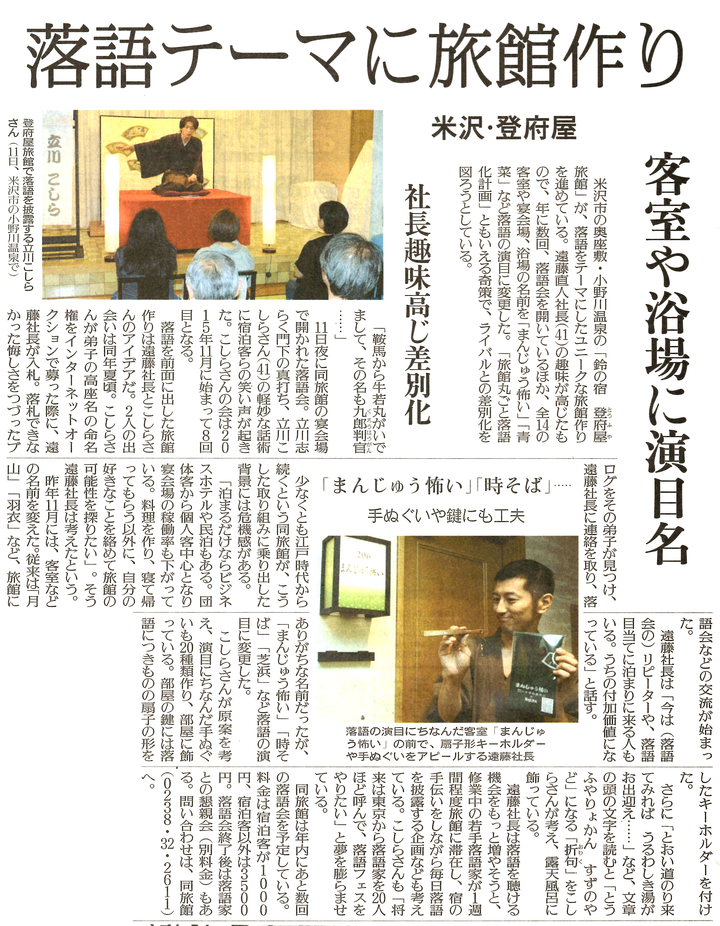 県内全域の温泉で落語会を開催⑧落語をコンセプトにした宿へ