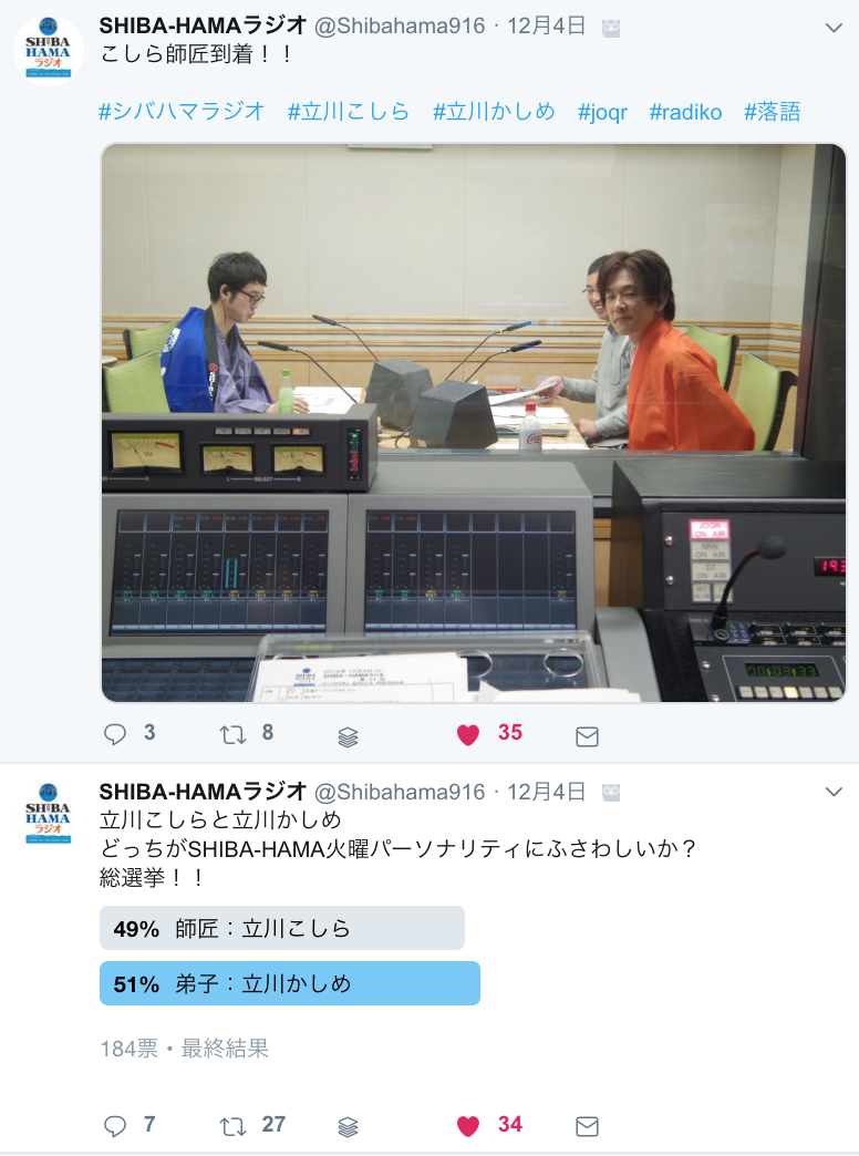 #シバハマラジオ でディスられる。立川こしら師匠の火曜日