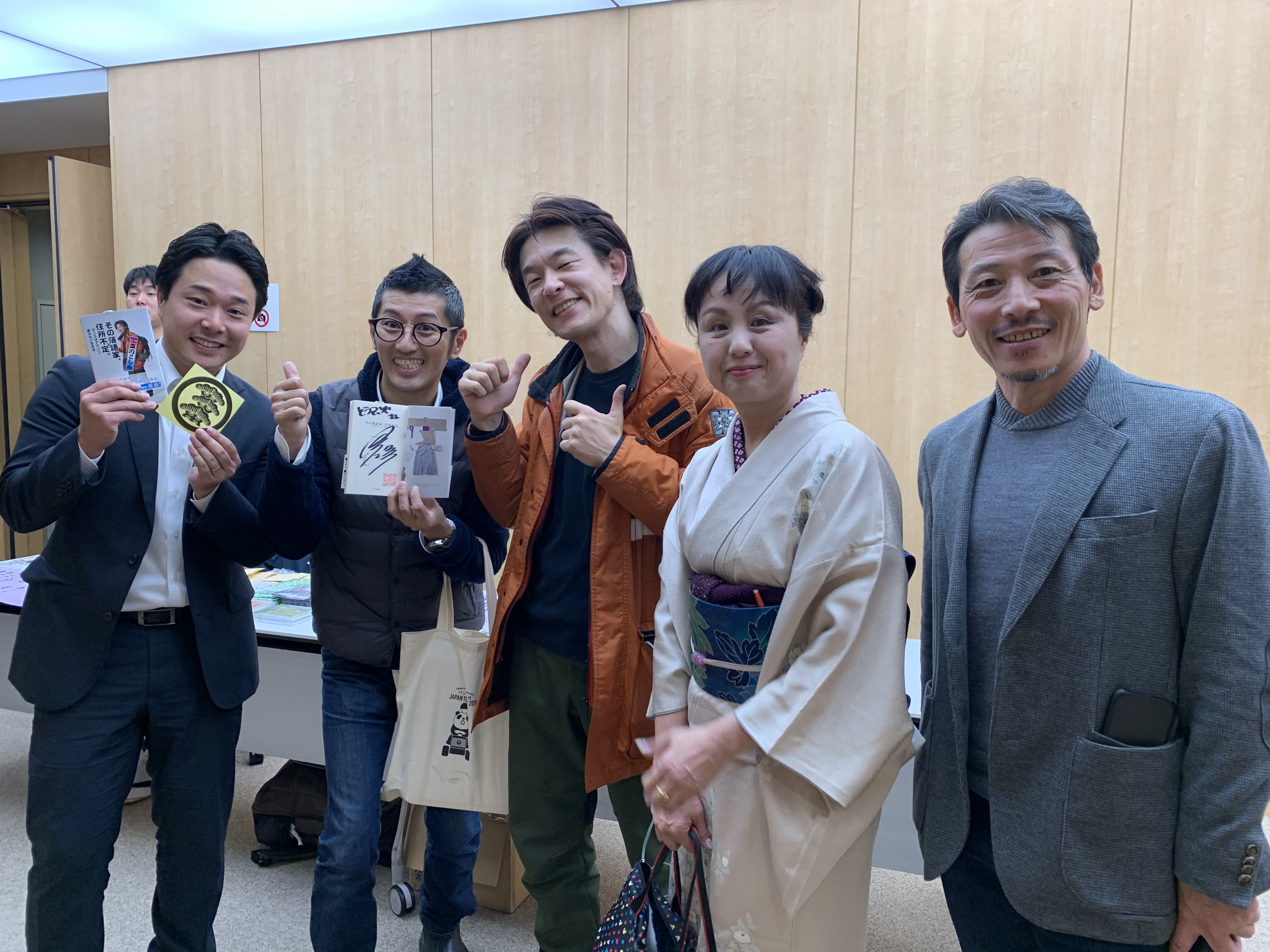 落語好きの面々と記念撮影、真ん中が立川こしら師匠