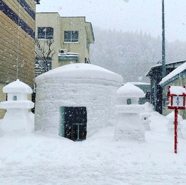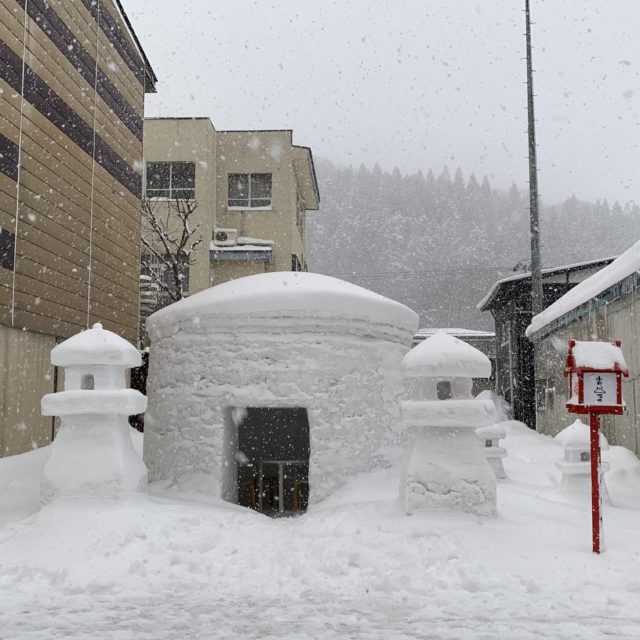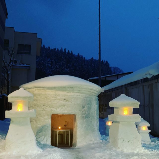 小野川温泉は、かまくらと雪灯籠。上杉雪灯籠まつり