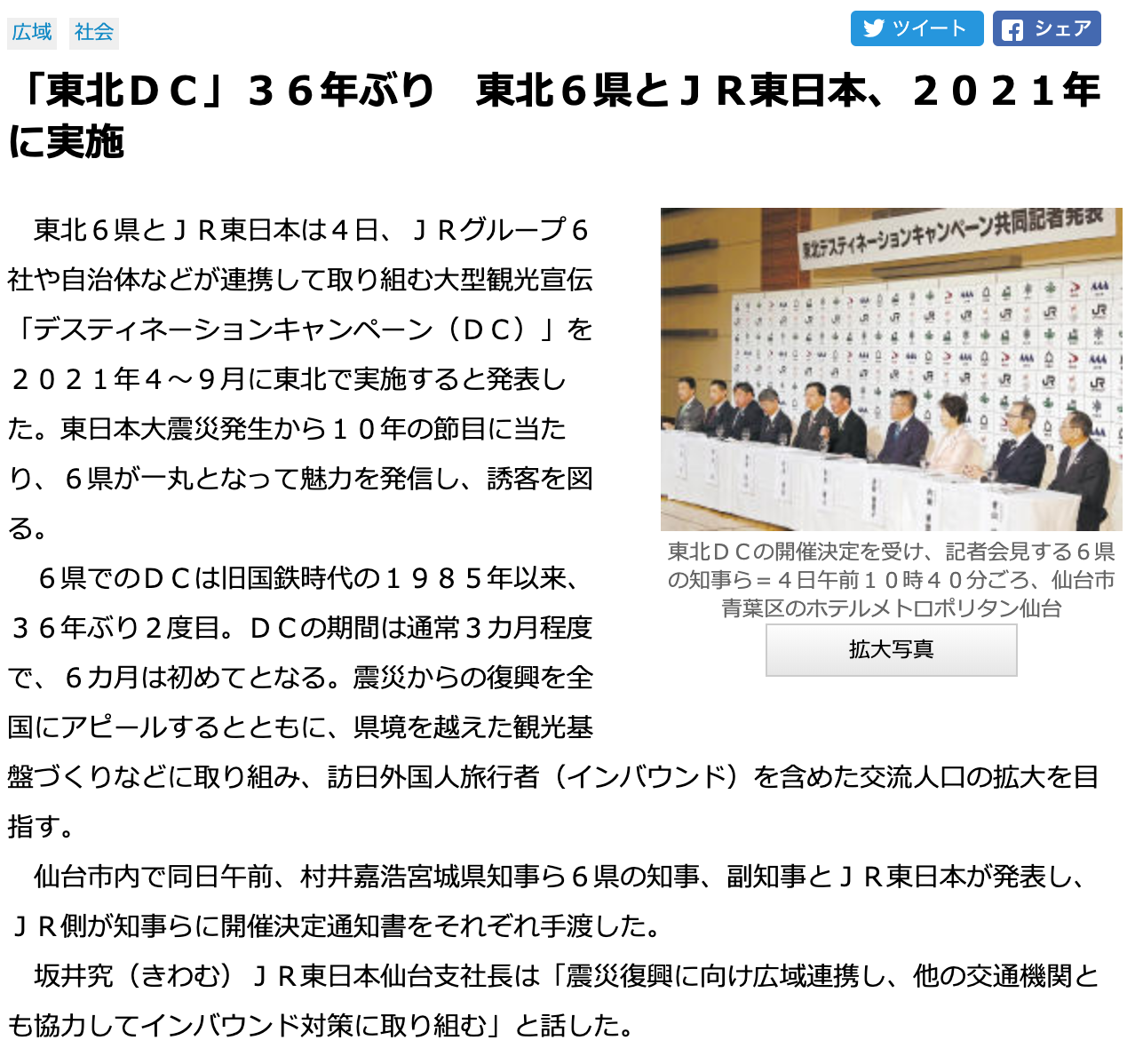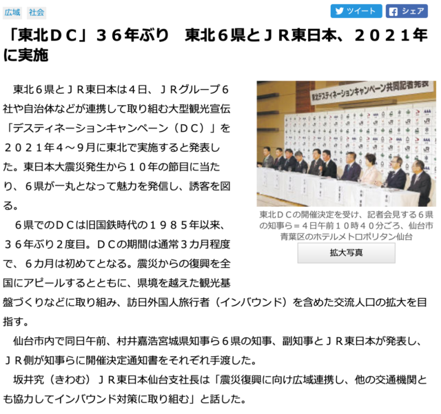 震災から10年を機に36年ぶりで東北6県が一致団結しての半年間のロングランのキャンペーン。