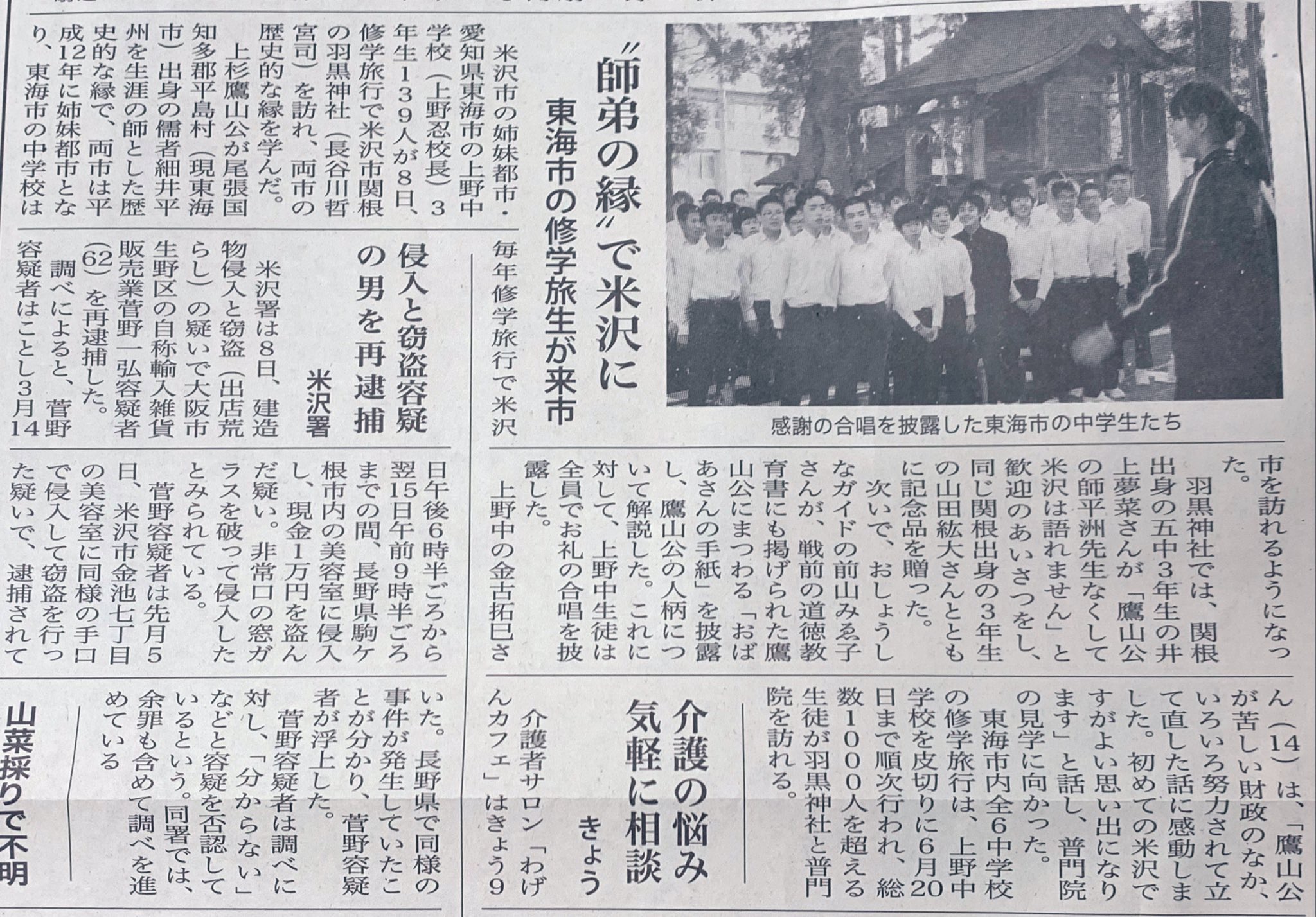 翌日の米沢新聞には、修学旅行の様子が掲載されていました。