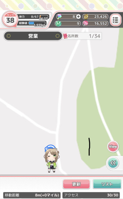 「営業」では、現在位置が出てきて、リアルななかで名所めぐりができます。