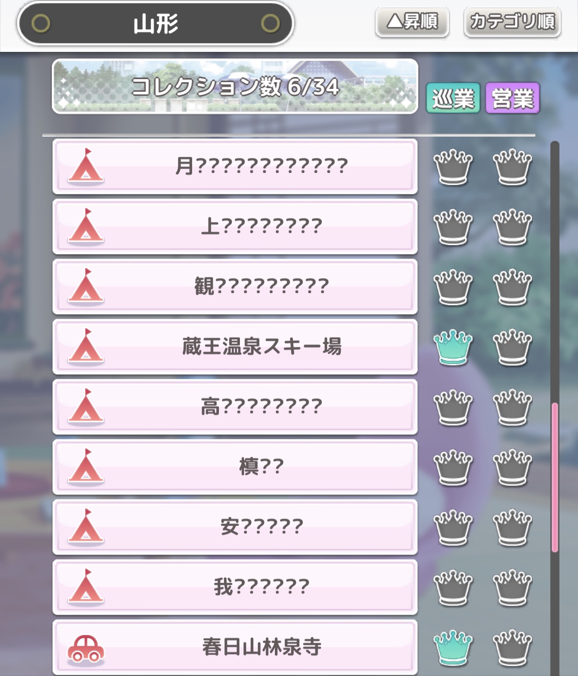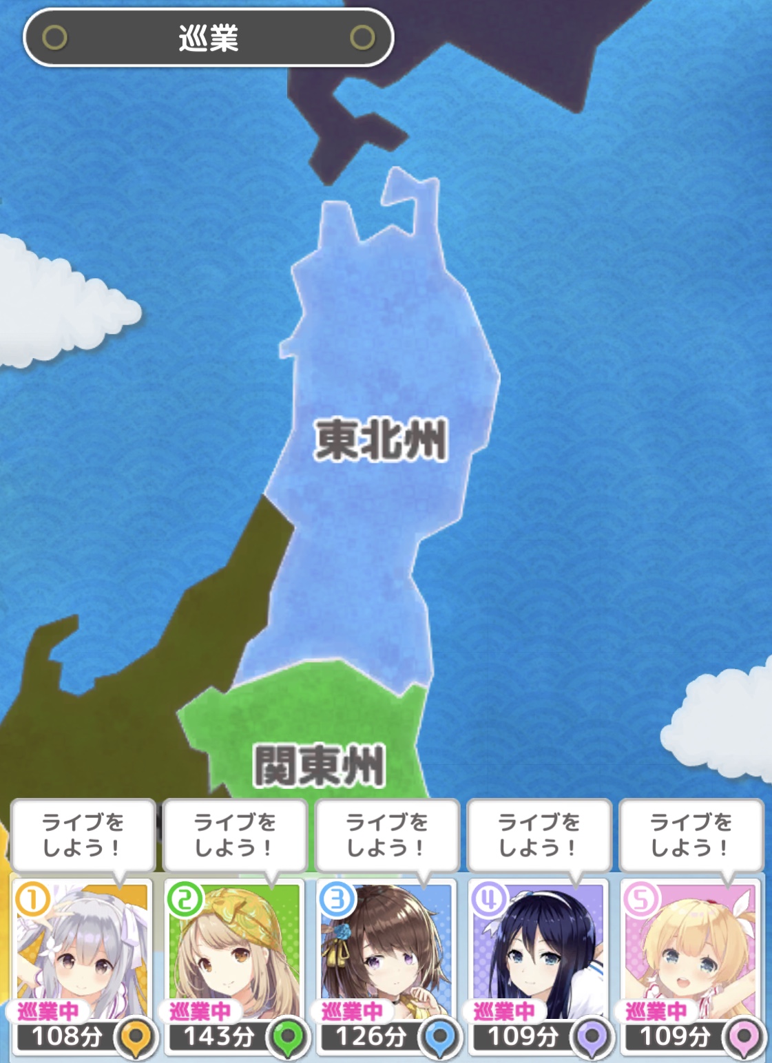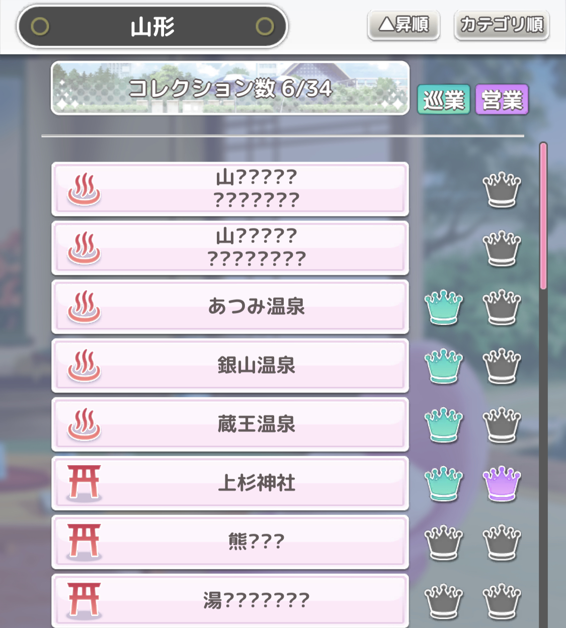 「巡業」では、スマホ上で全国を回って、温泉地を巡ります。