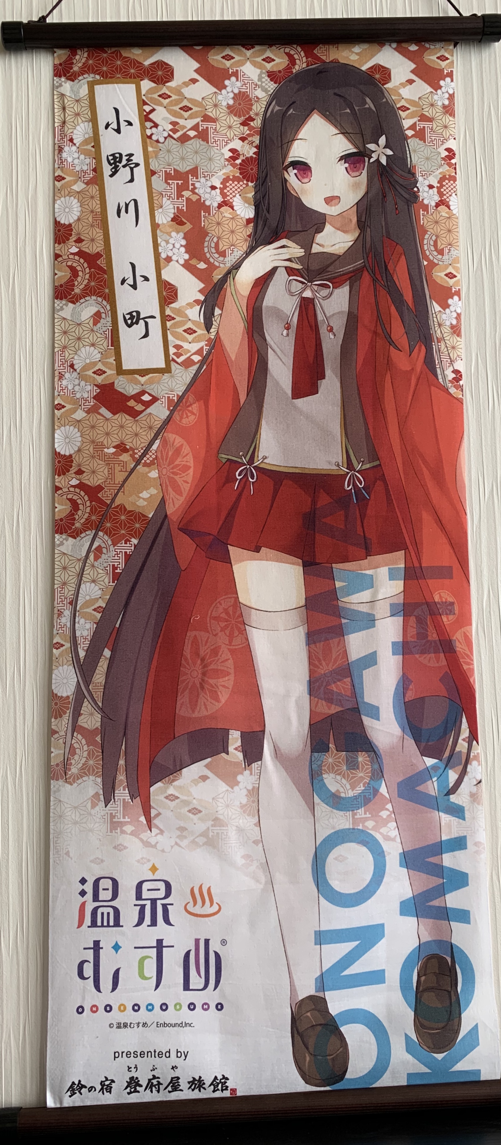 温泉むすめを活用し、当館らしい商品を開発し、タペストリーにもなる。