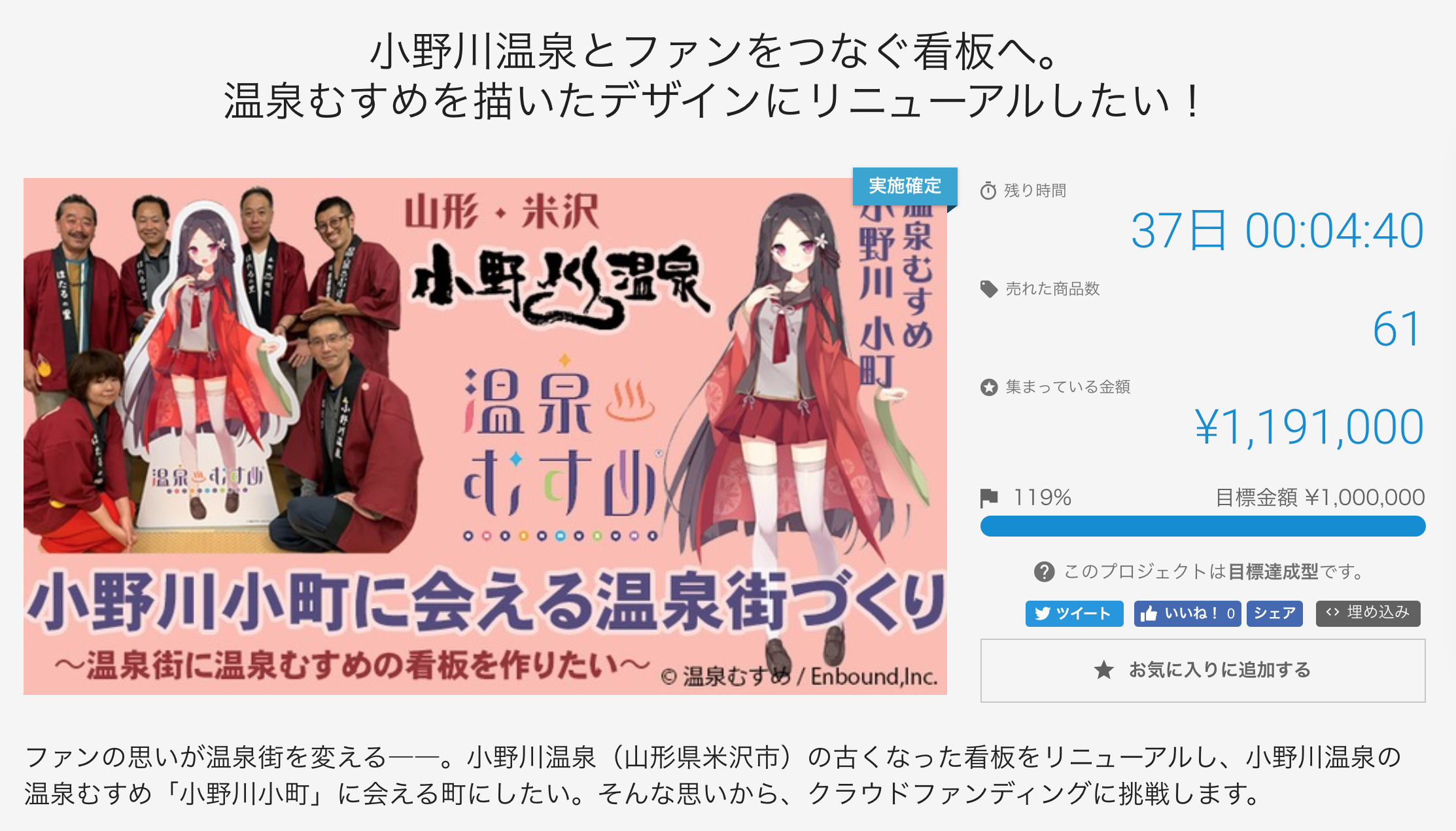 また、デビューしたての温泉むすめにも関わらず、クラウドファンディングに挑戦しています。