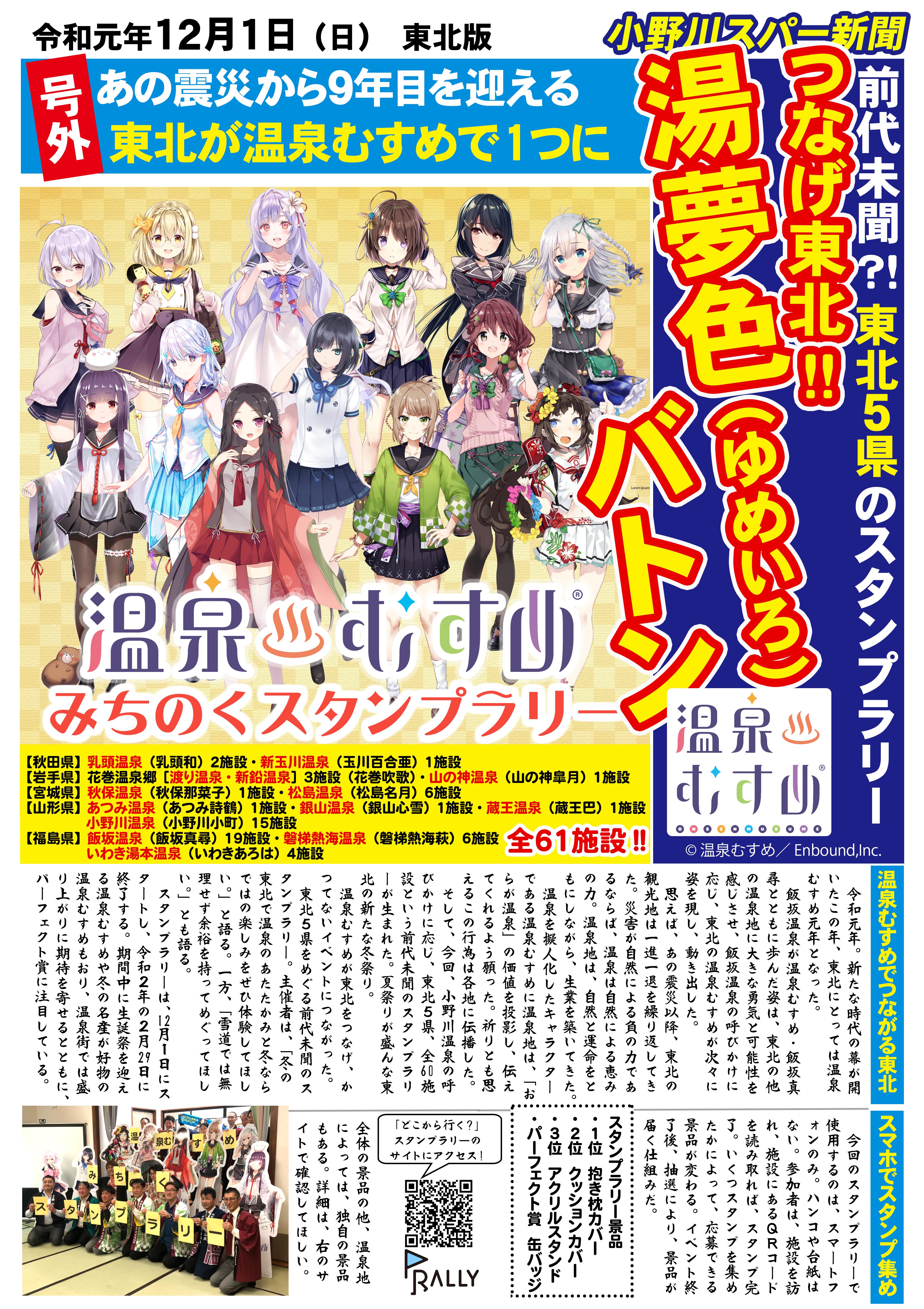 12月1日より、温泉むすめ みちのくスタンプラリーがスタートしました。