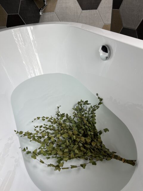 ヴィヒダは、サウナの中で体を叩いたり、撫でたり、木の香りを感じるのに使います。
