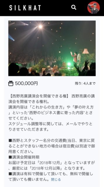 そのリターンに「講演会開催権」があったりするのです。