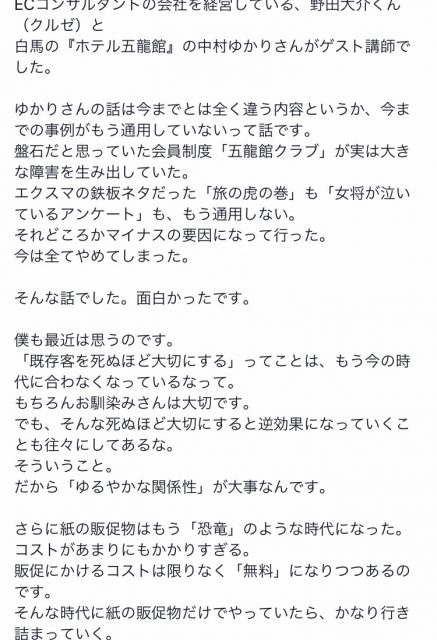 エクスマの伝説的事例を数々生み出し、旅館業界では今も成功事例の代表として語られる宿です。