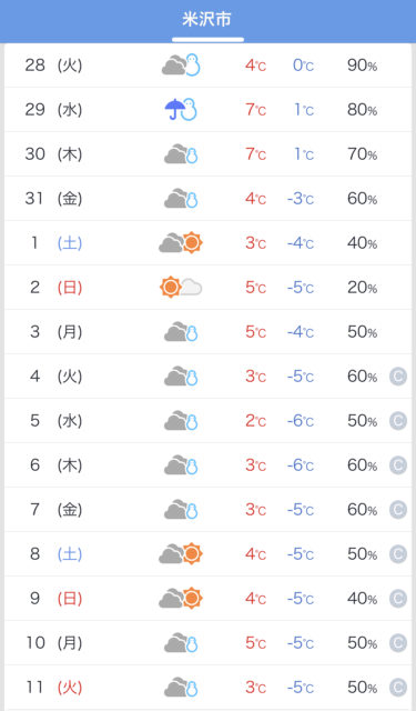 今年は、雪のない米沢。