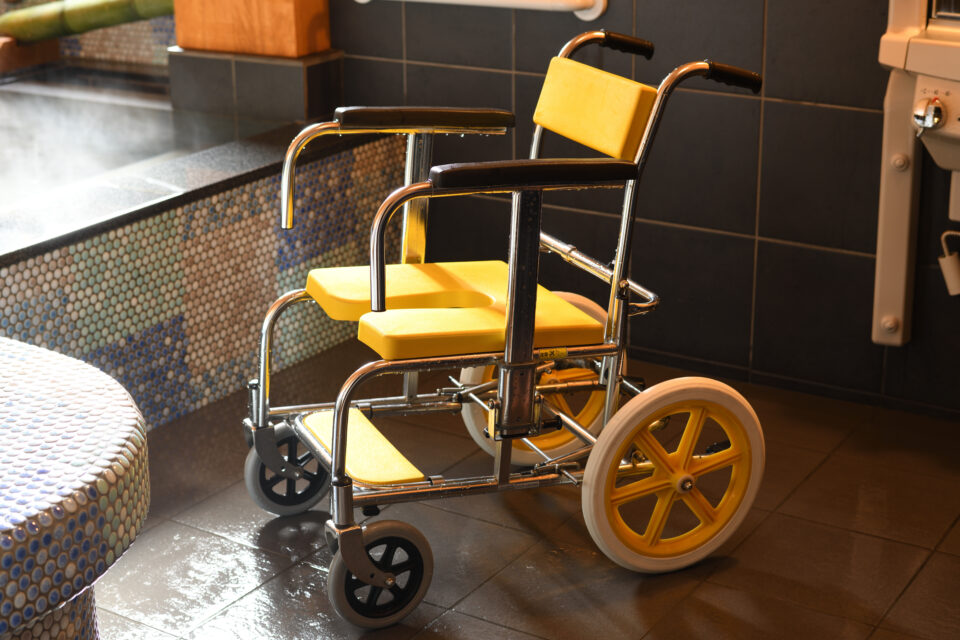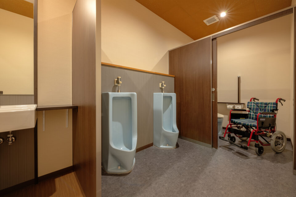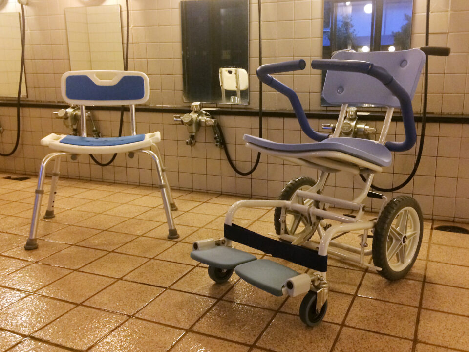 車いす利用の方や、立ち座りが難しい方でも温泉を楽しめるよう、浴室全体を“負担が少ない動線”で設計。