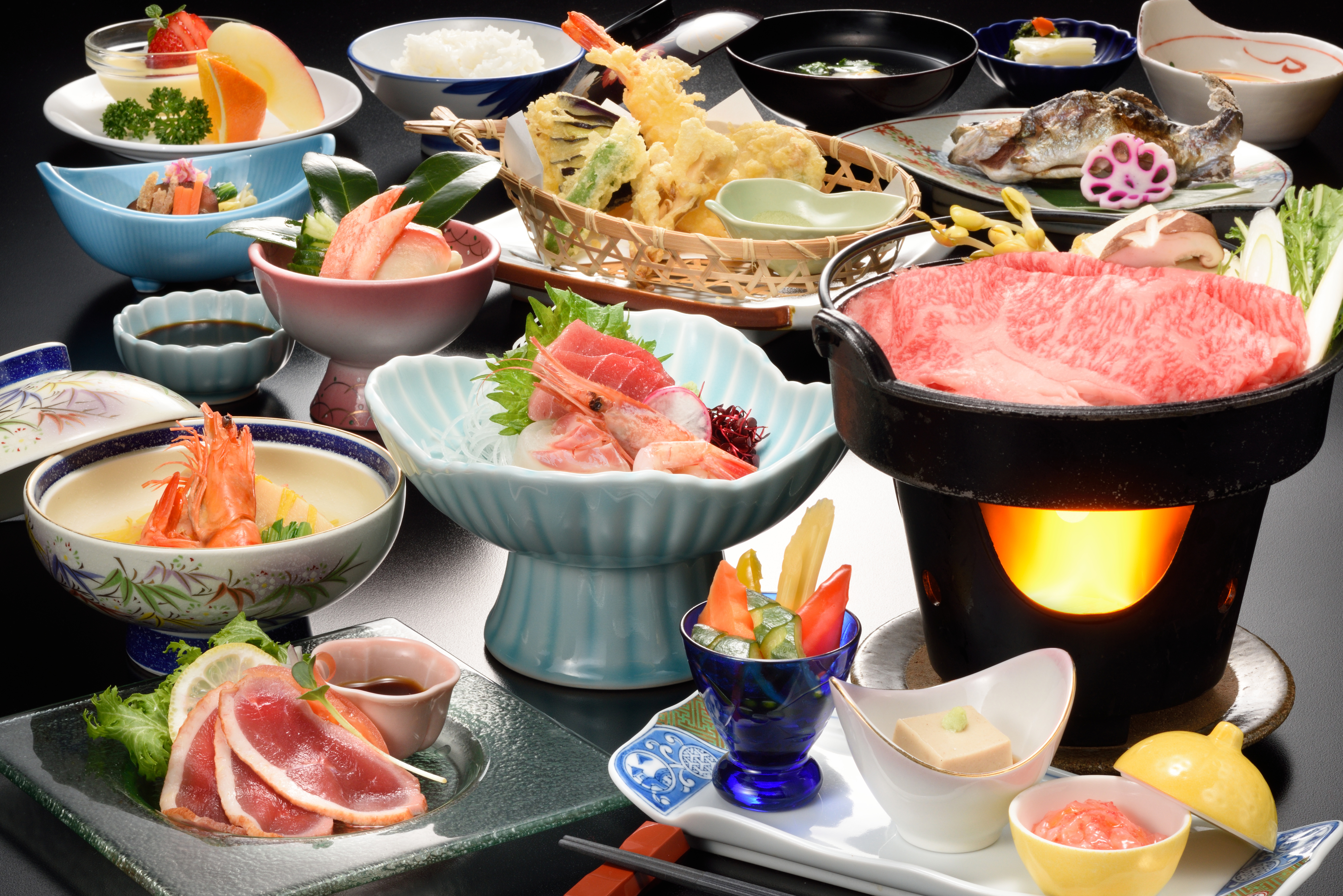 - 牛肉メニューを、魚料理や蟹のしゃぶしゃぶなどに変更することができます。