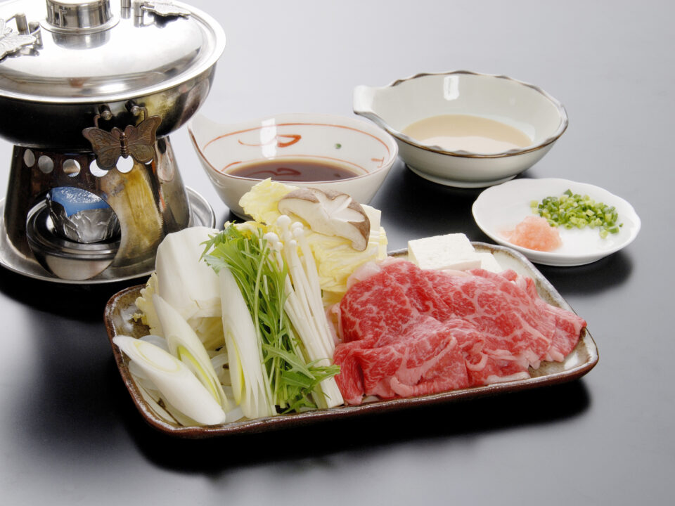 たっぷりの野菜とともに、甘辛い割下で。ご家族・グループで鍋を囲みたい方に。