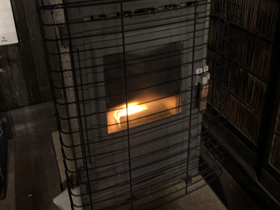 チェックイン後のひと息や、お待ち合わせに便利なロビー。ベビーカーや車椅子でも移動しやすい広めの動線と段差の少ないつくりで、冬はペレットストーブがやさしく暖めてくれます。