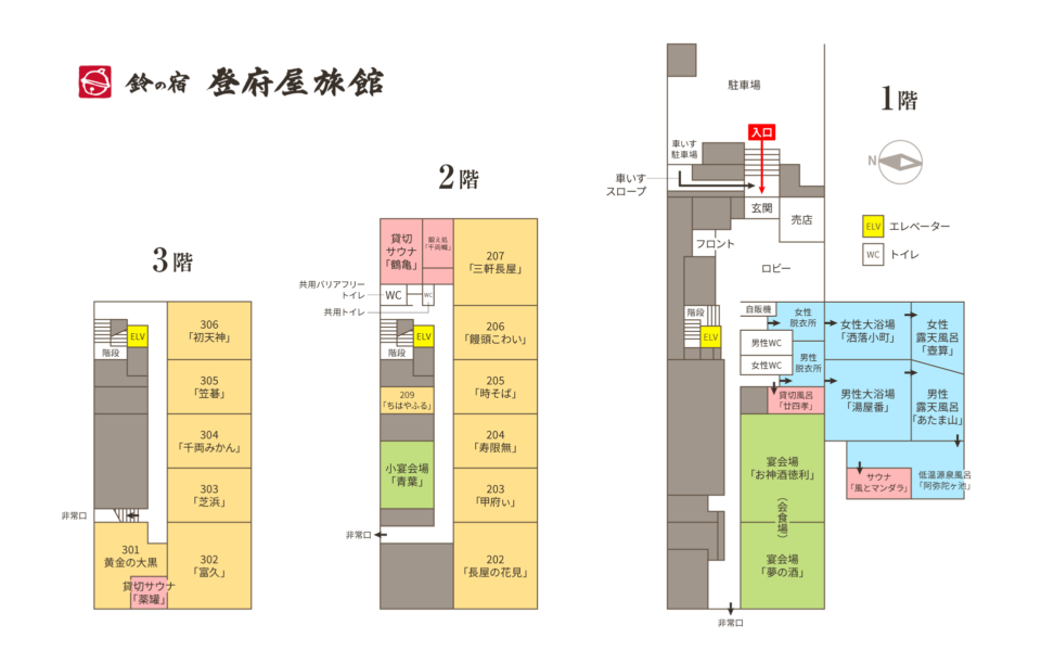 大浴場入口付近には、バリアフリー対応のトイレをご用意しています。