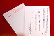 引出物と一緒にサービスされる「案内状はがき」。案内面(裏面)は、無料で印刷します。どうせなら、宛名面も。オプションとして、別料金で承ります。