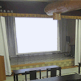 - 会食場で液晶プロジェクターを使い、スクリーンに上映。