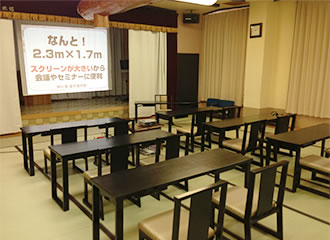 「旅館で会議って…。どうせ座布団でしょ^^;」いえいえ、議論しやすい椅子とテーブルをご用意。さらに会議に必要な大型備品が揃っているので、必要最小限の荷物で大丈夫。