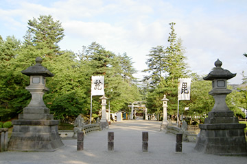 上杉謙信が祀られている神社です。米沢市民の心の支えとなっていて、初詣やお宮参り、結婚式や安全祈願など、四季を問わず多くの市民が訪れています。桜の季節のライトアップも見事です。近くには「洛中洛外図屏風」などの国宝を展示する上杉博物館や、愛の兜が見られる稽照殿があります。