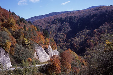 会津と米沢を結ぶ深い自然の中の観光道路。澄んだ空気の中を走る道路はブナの原生林に囲まれており、紅葉のシーズンには東北でも屈指の美しさを誇るスポットです。ドライブに最適!