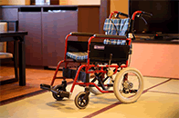 車椅子を無料でお貸ししております。もちろん、お客様がお持ちの車椅子をお使いいただいても結構です。車輪カバーもご用意しています。