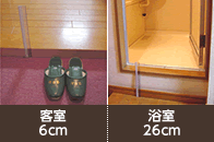 ほとんど段差のない造りで、お足元が不自由な方にも楽々お過ごしいただけます。気になる段差は写真の2箇所の入口だけです。