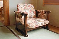 お座敷用の低い椅子もございます。ひじ掛けがついているので、立ち上がる時にも便利です。会食の際には、お膳を高めに設置して、椅子のままお食事いただけます。