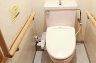 当館は全ての客室がトイレ付です。また館内の全てのトイレに 温水洗浄便座(ウォシュレット)と手すりを設置。車いす特別室には車いすのままでも利用しやすい広めのトイレが付いています。
